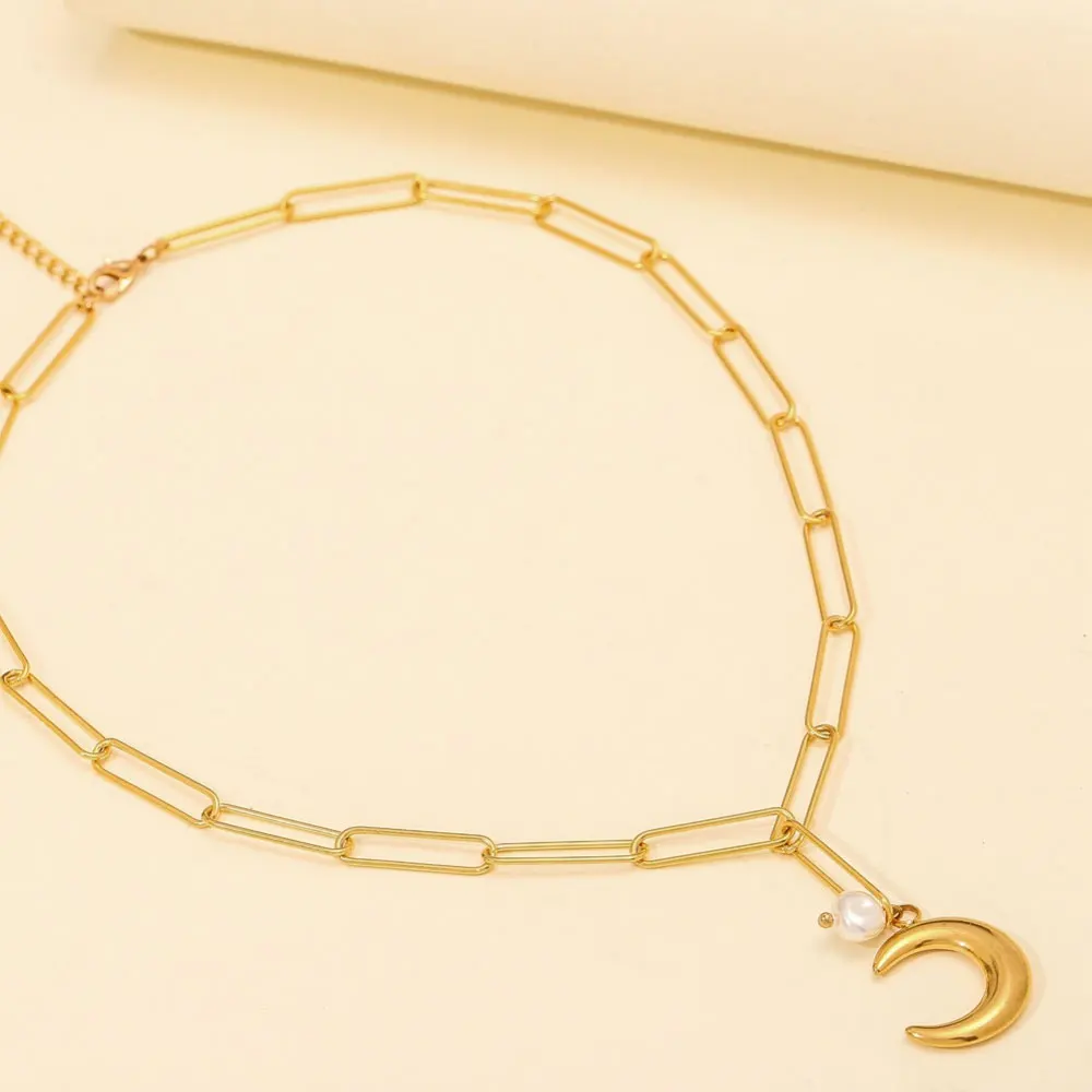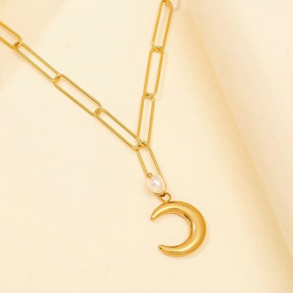 Ожерелье с изящным полумесяцем и подвеской из нержавеющей стали