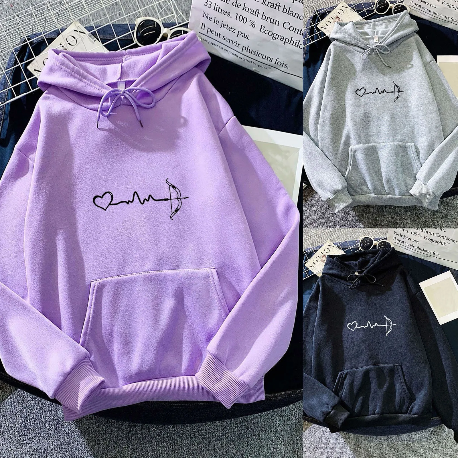 Женские толстовки с принтом влюбленных сердец, пуловеры с длинным рукавом и капюшоном, зимние топы с кулиской, свитшоты, милая одежда в стиле Kpop Харадзюку