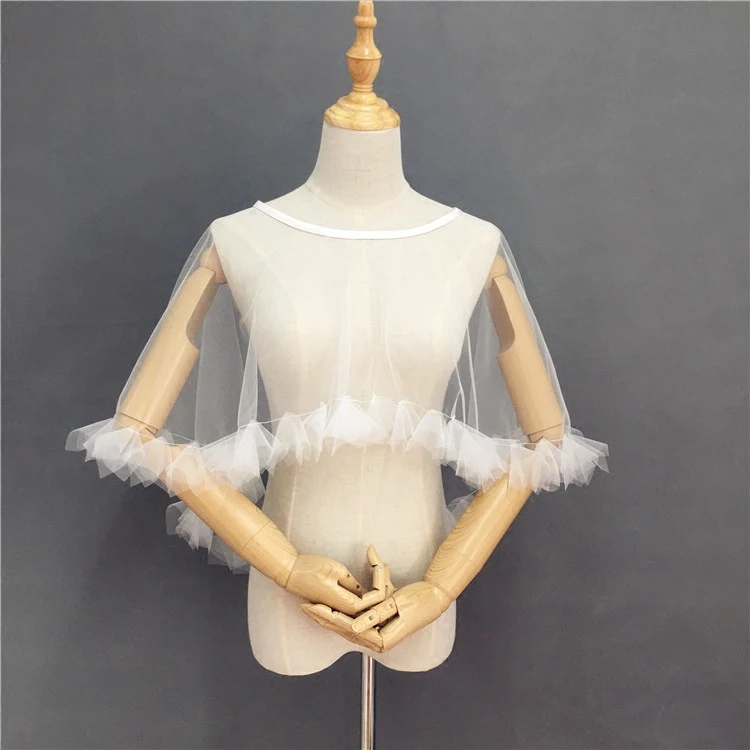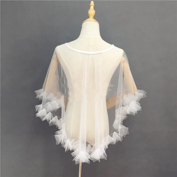 Летняя Тюлевая Свадебная накидка с оборками по краям Свадебная накидка короткая накидка для весеннего свадебного платья куртка