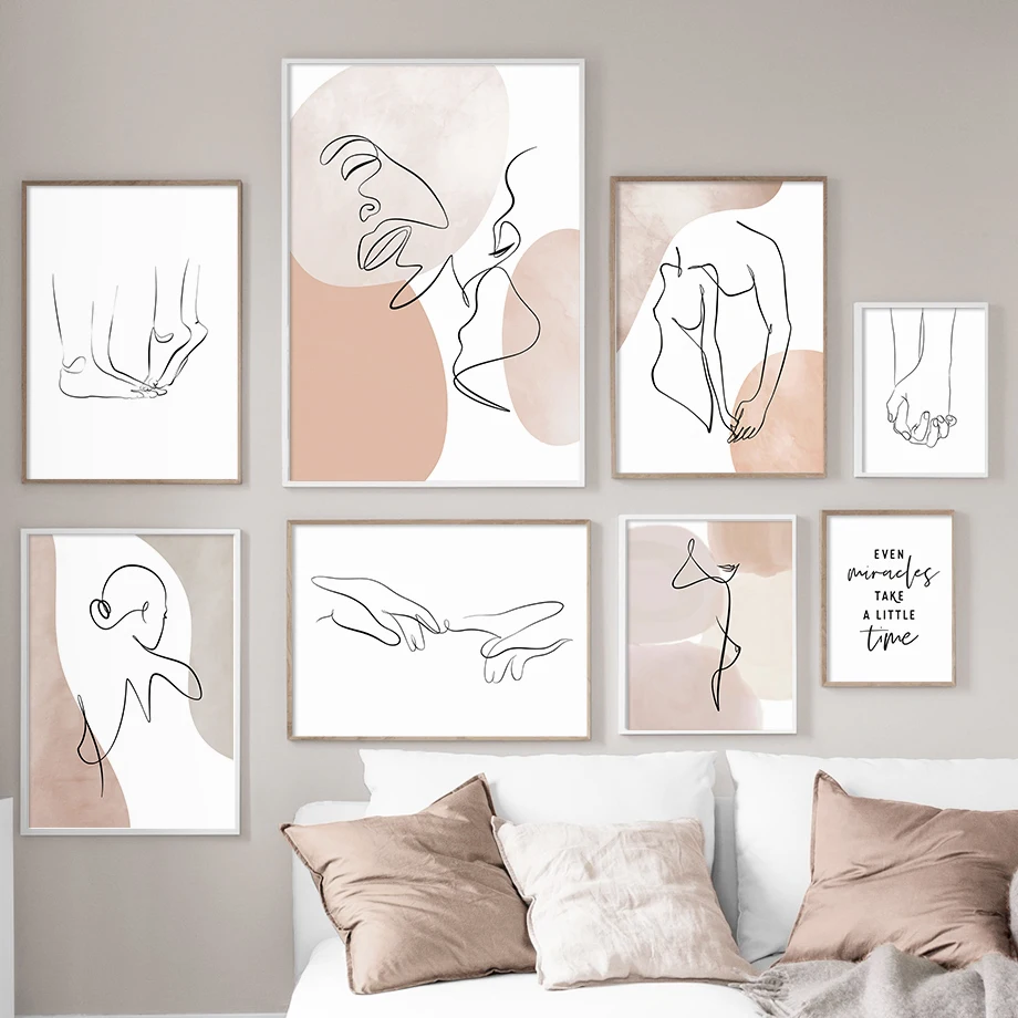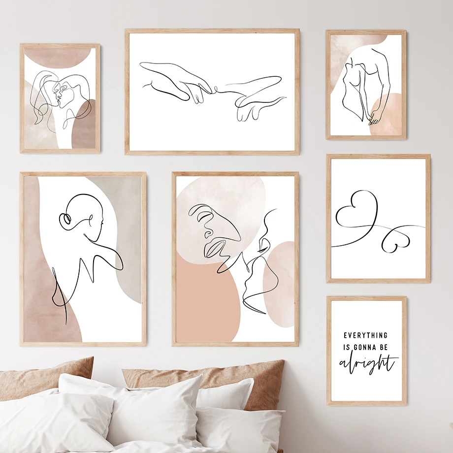 Настенная Картина на холсте Рисование лески влюбленная мальчик девочка Поцелуй тело скандинавские плакаты и принты современные настенные картины для декора гостиной