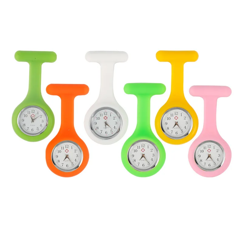 Новые однотонные Милые силиконовые аналоговые цифровые часы с клипсой высокого качества Брошь для медсестер карманные часы с кварцевым механизмом