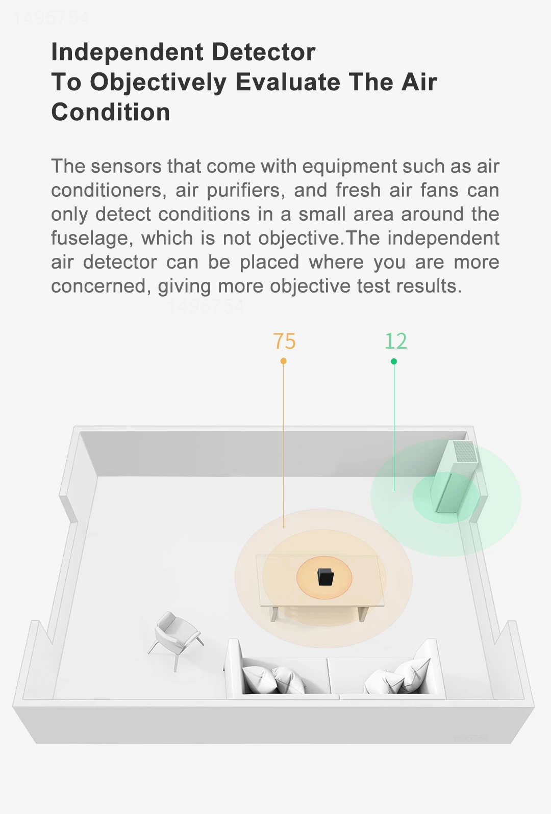 Датчики, которые поставляются с таким оборудованиемКак кондиционеры, очистители воздуха и вентиляторы свежего воздуха могут только обнаруживатьУсловия в небольшой области вокруг фюзеляжа, что не является объективным. Цель.Независимый детектор воздуха может быть расположен там, где вы большеЧто дает более объективные результаты тестирования.