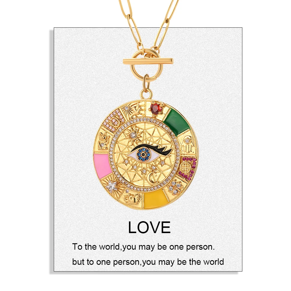 Турецкое ожерелье от сглаза для женщин, кристалл, эмаль, позолоченный золотой женский кулон, длинные цепи из нержавеющей стали, готивечерние
