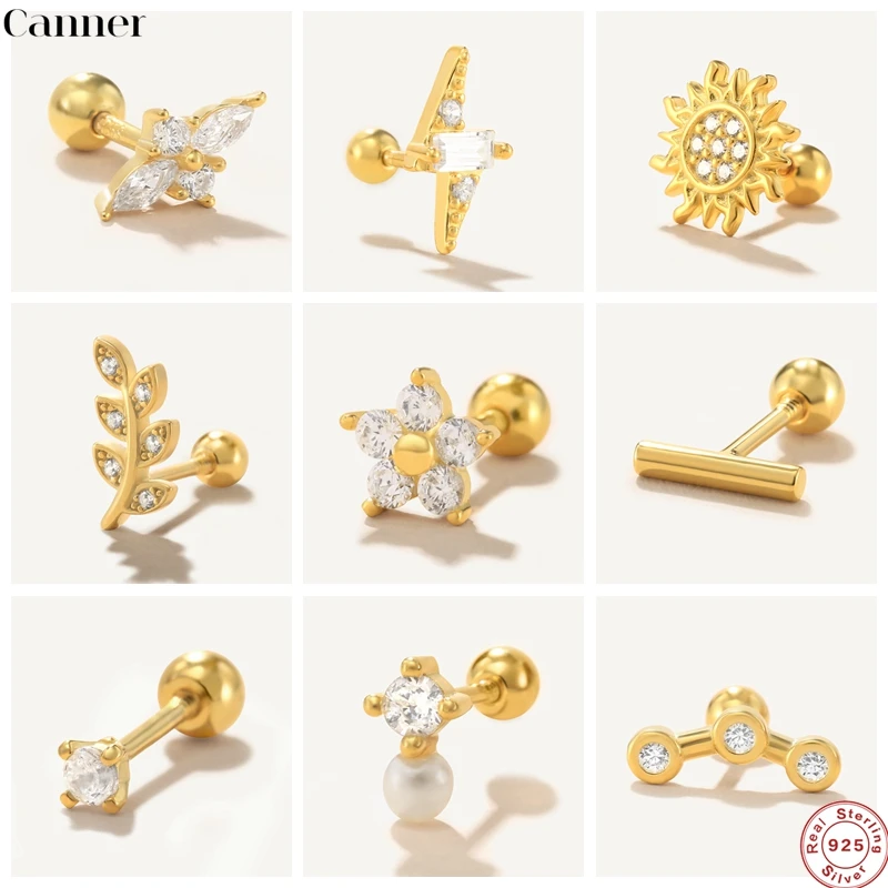 CANNER 1 шт. корейские модные шпильки для ушей хрящи 925 серебряные серьги для женщин Циркон маленький лист молния уха пирсинг ювелирные изделия подарок