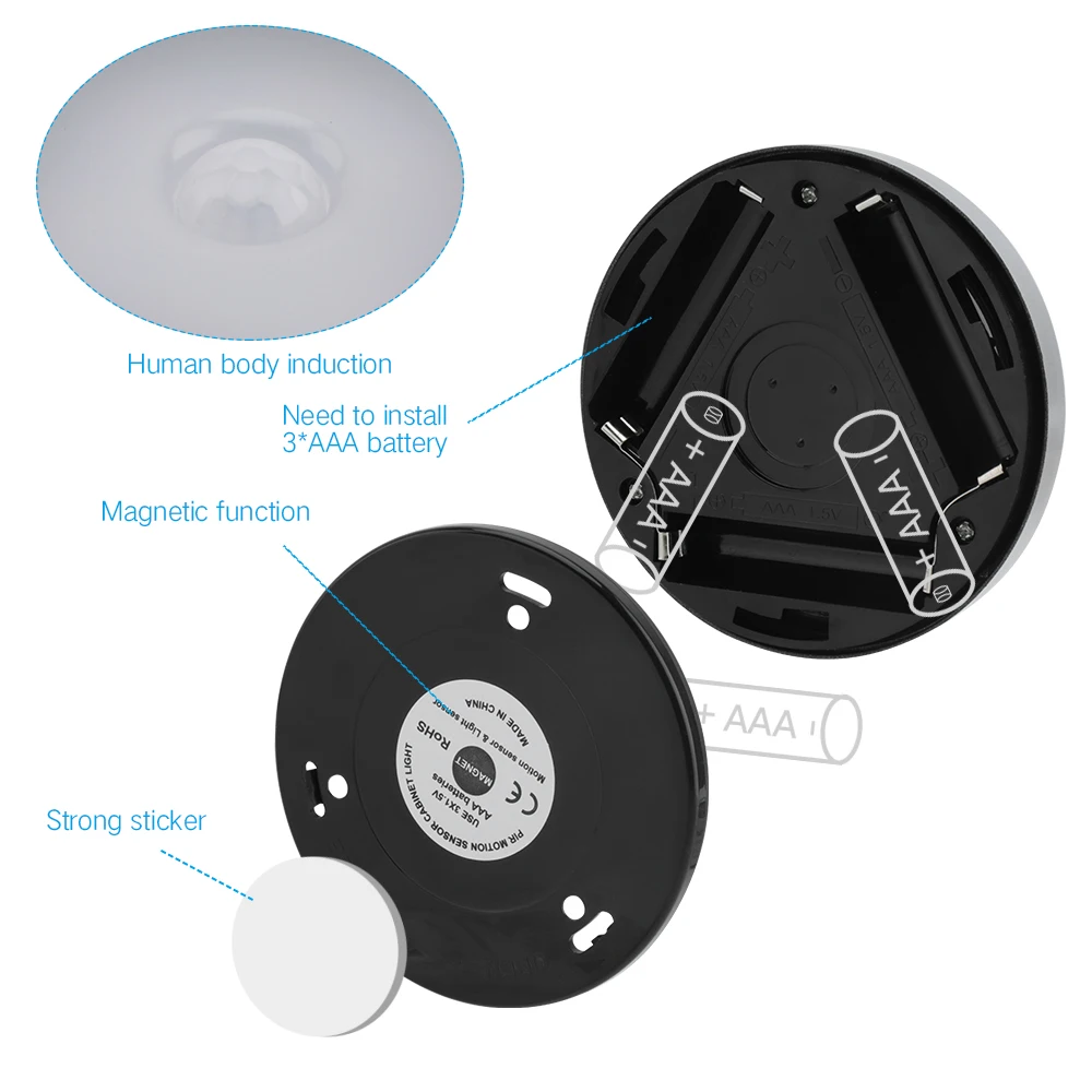 По доставке, работе претензий нет. Для ночника (для меня) 6 светодиодов многовато - светит ярко. Магнит сильный. Основная проблема была в начале - провернуть, чтобы открыть: зацепиться не за что, обе половинки гладкие. Поцарапал немного отверткой корпус. После открытия на будущее ножом расширил пазы - пластик мягкий. Есть эффект памяти: после установки мизинчиковых батареек (не в комплекте), светильник, естественно, загорелся. А как потух (примерно через 30 с - как и в характеристиках), напугал - ни на махания руки ни на хождения мимо сразу не реагировал