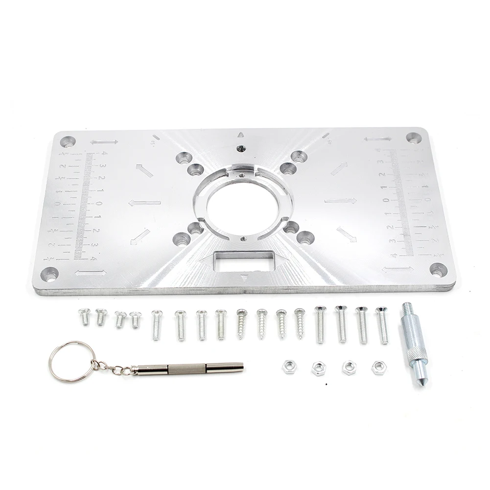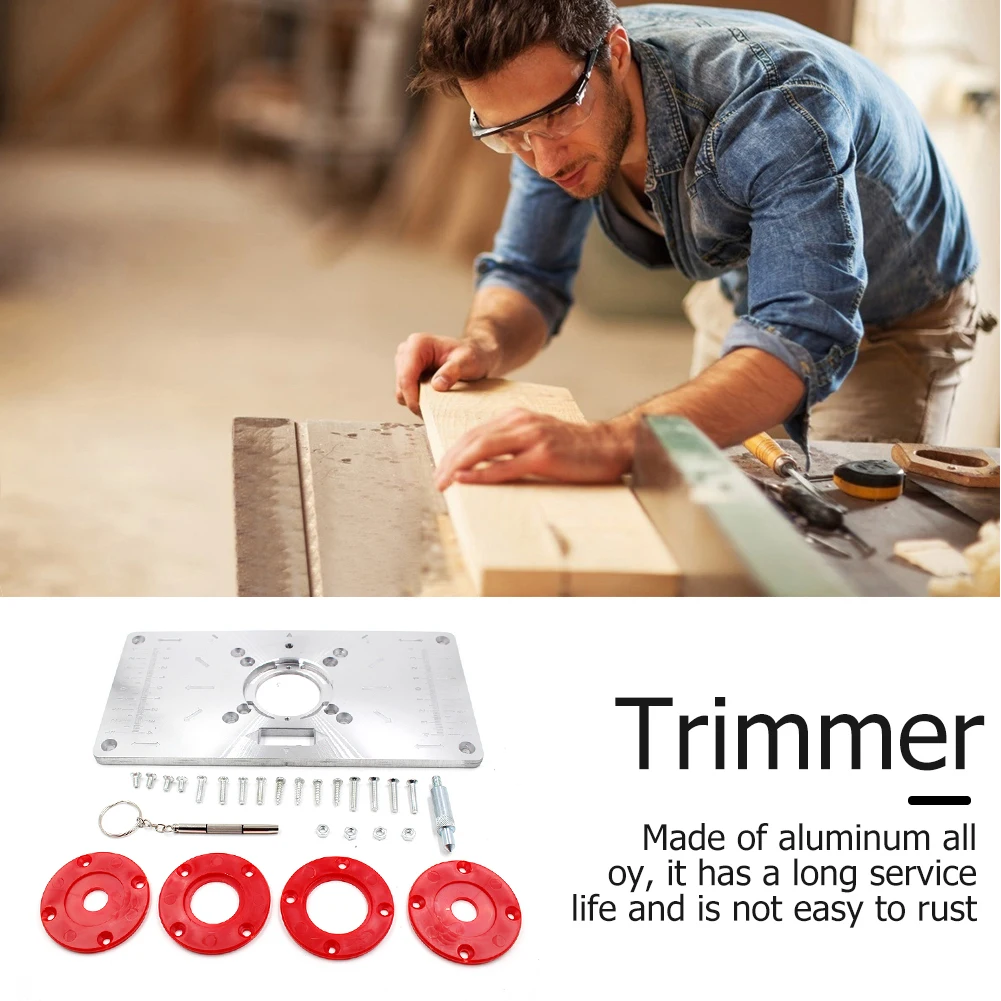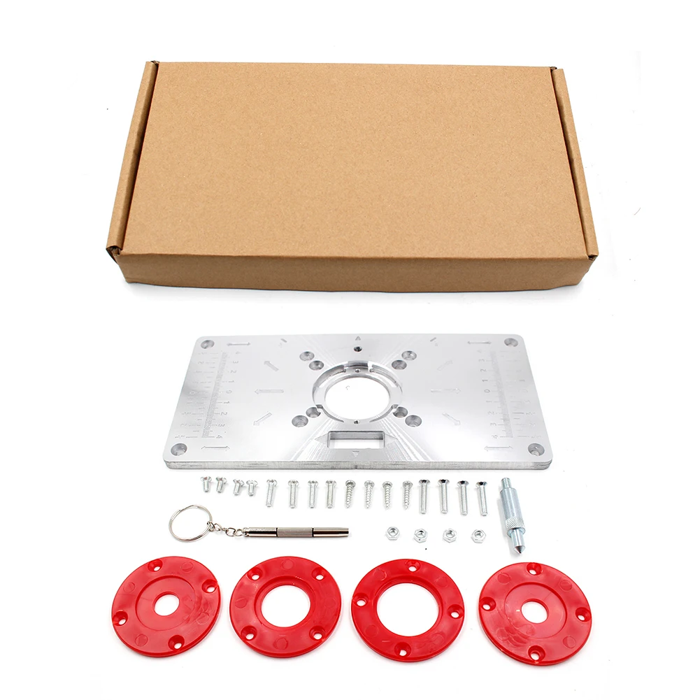 Алюминиевые Столярные фрезерные станки, вставные плиты, деревообрабатывающие скамейки, Настольная пила, многофункциональные модели отделки дерева, гравировальный станок с 4 кольцами Характеристика: Изготовлен из алюминиевого сплава, имеет длительный срок службы и не легко ржавеет. Удобная Втулка с центральным отверстием для выравнивания Обрезной машины, чтобы она была в центре сверла. Легко и точно сверлить и установить любую обрезную машину. Он прост в использовании и делает работу хорошо выполненной. Спецификация: Материал: корпус из алюминиевого сплава Цвет: красный, черный Размер: 235*120 мм Гравировка с метрической шкалой, длина 8 см Использование: деревообрабатывающий станок для отверстия, станок для обрезки, токарная доска Примечание: В связи с различиями мониторов и эффектами освещения реальный цвет товара может немного отличаться от цвета на фотографиях. Спасибо! Возможны отклонения в 1-2 см вследствие измерений вручную.