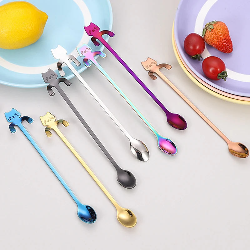 Кофейная ложка из нержавеющей стали, милая красочная чайная ложка в форме кошки, десертная ложка для закуски, мороженое, столовая посуда, кухонные инструменты