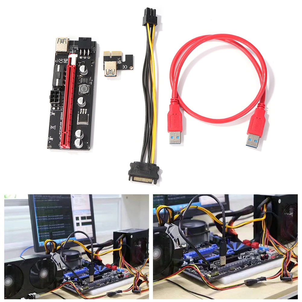PCI-E X4 1 к 4 USB 3,0 множитель карты + 4xPCI-E 16X Райзер + 4xPCI-E 1X адаптер + комплект удлинительного кабеля VER009S компьютер для майнинга BTC