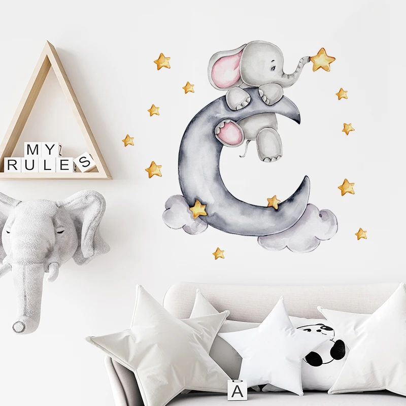 Мультяшные серые детские Слоны Луна золотые звезды настенные наклей...