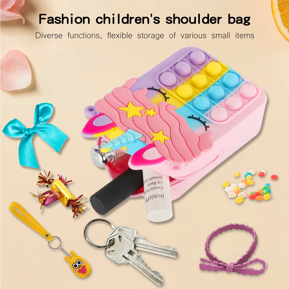 Модная Популярная игрушка в виде пузырьков, Радужный Единорог, кавайный Кошелек для монет, Детский кошелек, женская сумка из силикагеля y