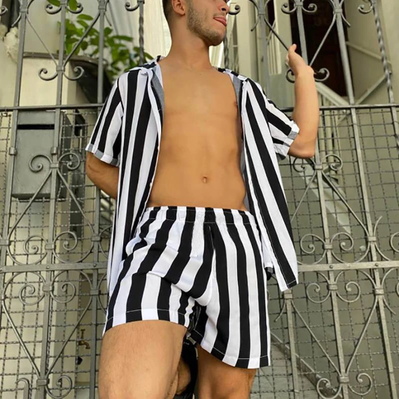 Комплект Гавайский мужской, рубашка с коротким рукавом, на пуговицах, пляжные шорты, кокосовый принт, повседневный комплект из 2 предметов для поездок, лето