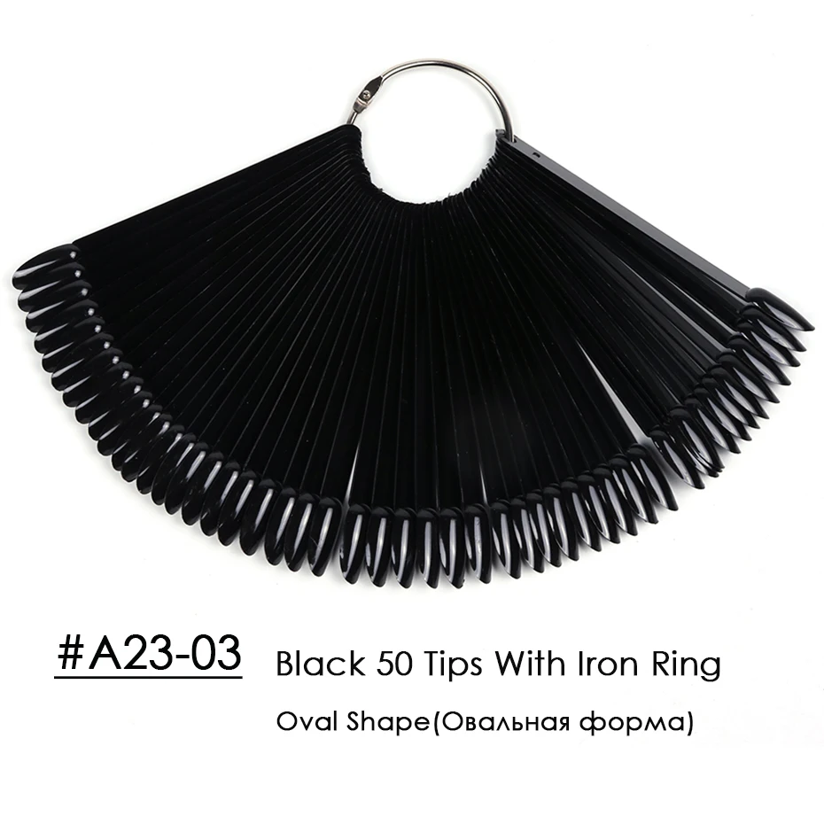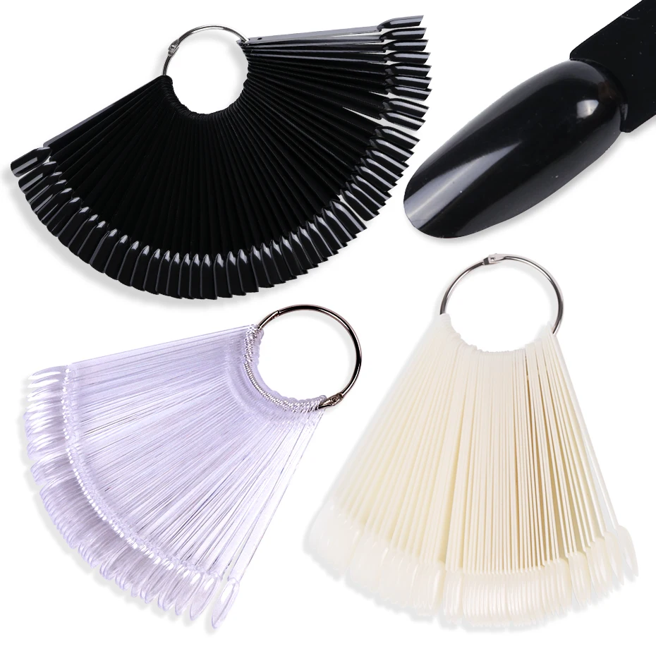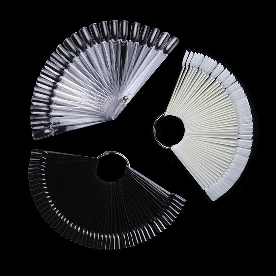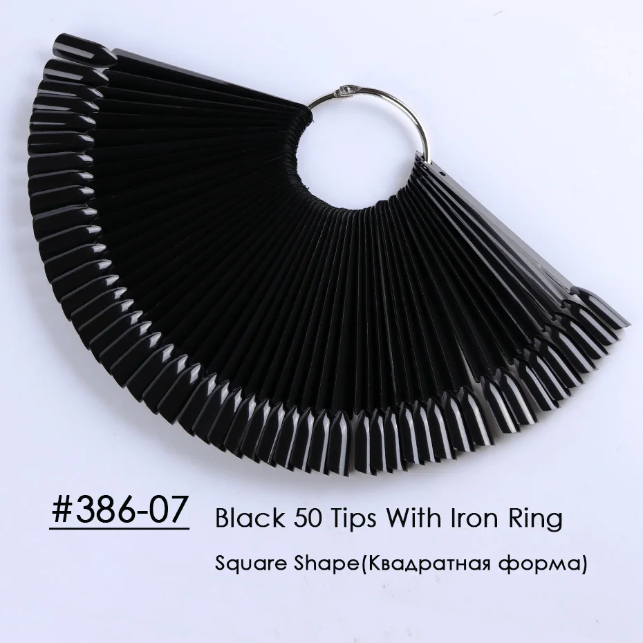 Есть две различные формы на выбор, при оформлении заказа, пожалуйста, выберите правильную форму.Спецификация:Количество: 50 шт.Цвет: прозрачный/натуральный/черныйРазмер: как показано на картинкеОсобенности:100% новый, высококачественный продуктВеерообразный дизайн с обручем, легко носить с собой и отображать цвет и дизайн ногтей.Можно использовать в качестве модели для нового лака для ногтей, который вы купили, и других вещей о Нейл-Арте.Очень практичные инструменты для маникюраПодходит для профессионального, маникюрного салона и личного/домашнего использования.Комплектация:1 Набор накладных ногтей