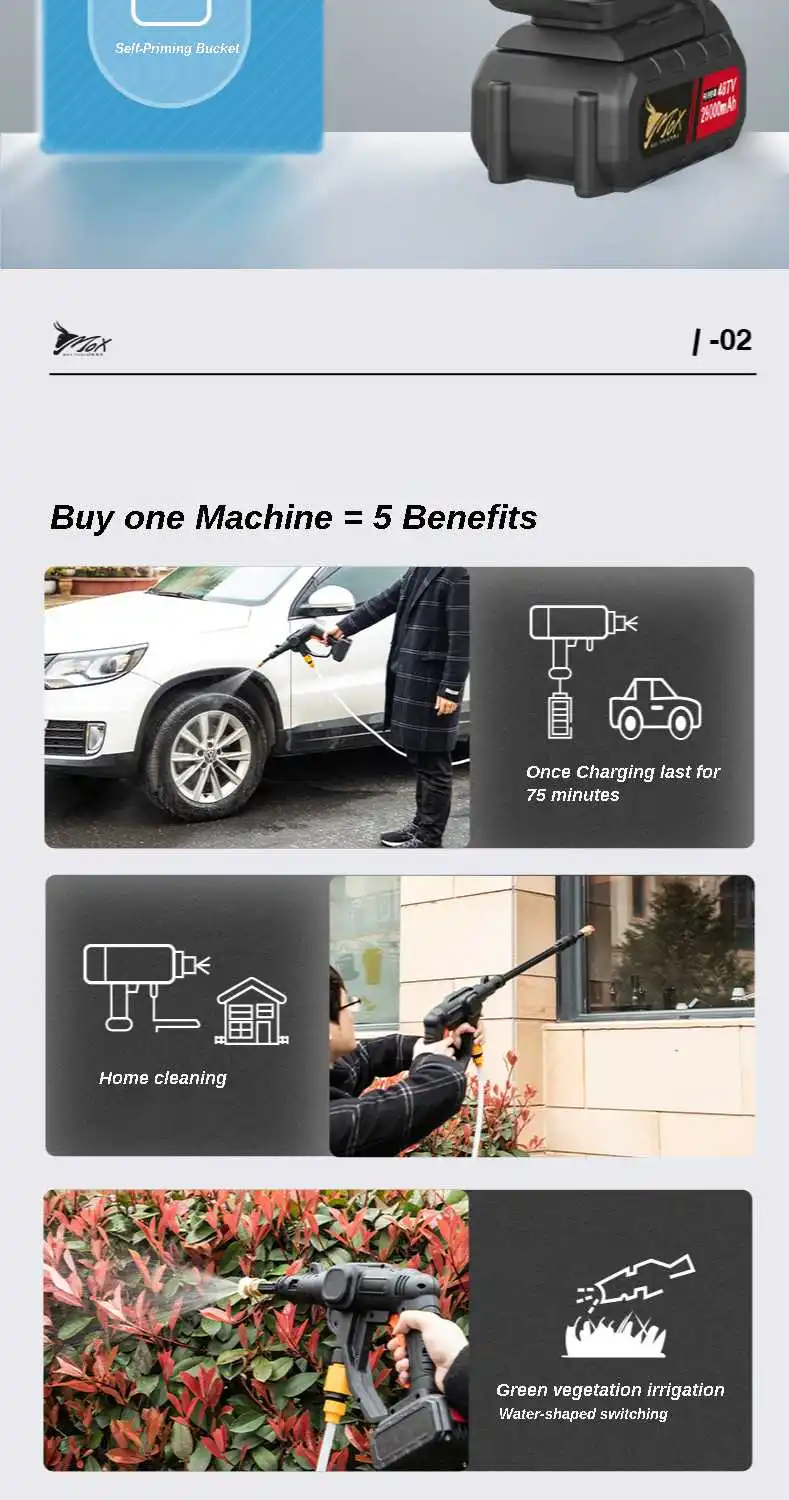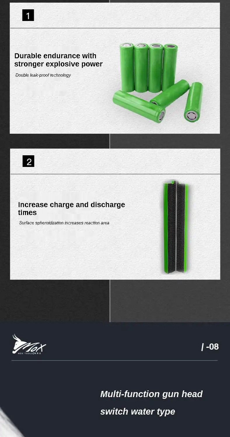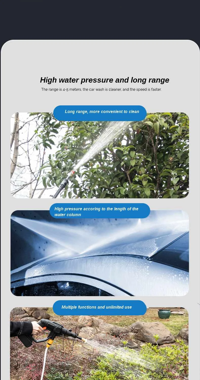 Особенности:● Мощный полностью Медный двигатель, автоматическое выключение и старт-стоп.● Портативный самовсасывающий, более быстрый и прочный, встроенный фильтр из нержавеющей стали, Высокоэффективная и глубокая фильтрация примесей в воде.● Водяной пистолет может переключать тип воды по желанию, и поток воды может регулироваться постепенно от малого до большого путем замены сопла, И вентилятор и Прямая регулировка водной линии могут быть переключены по желанию.● Мощный Срок службы батареи, литиевая батарея значительно продлевает срок службы машины● Интеллектуальный индукционный двигатель с переменной частотой, двигатель с распылителем воды автоматически запускается, останавливает двигатель с распылителем воды автоматически останавливается.● Его можно использовать в качестве моющего пистолета для воды, садовых оросительных инструментов.● Идеально подходит для полива сада, орошения в сельском хозяйстве, мытья автомобилей, уборки дома и т. д.● Универсальная Батарейная розетка, используется универсальная Батарейная розетка, что делает его более удобным для покупки запасных батарей. Если вам нужно купить батареи, пожалуйста, свяжитесь со службой поддержки клиентов и подтвердите перед покупкой.