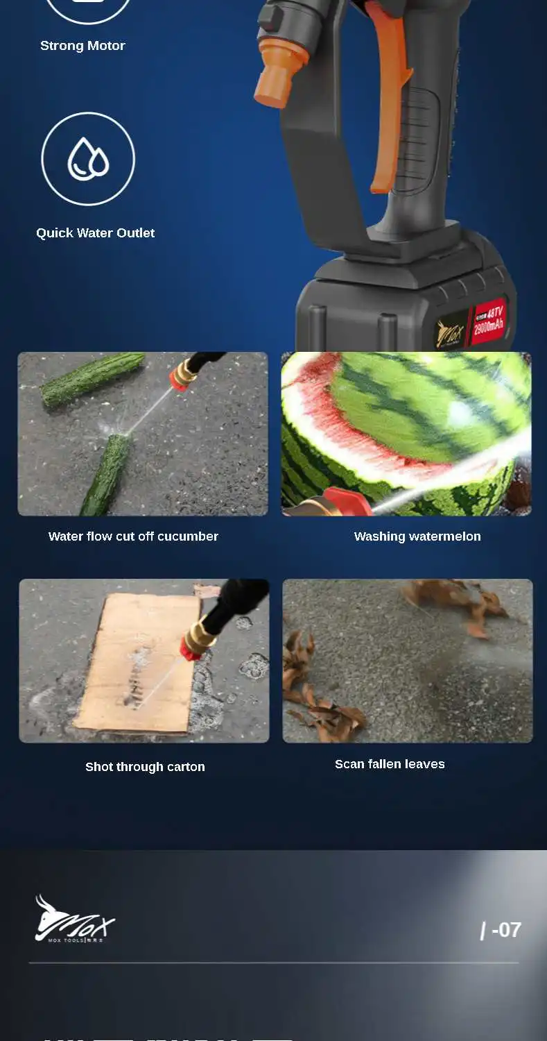 В3: почему давление воды настолько малоеA3: размер давления воды имеет определенные отношения с соплом, вы можете выбрать, чтобы заменить сопло; Когда батарея используется, давление воды будет низким, пожалуйста, заряжайте