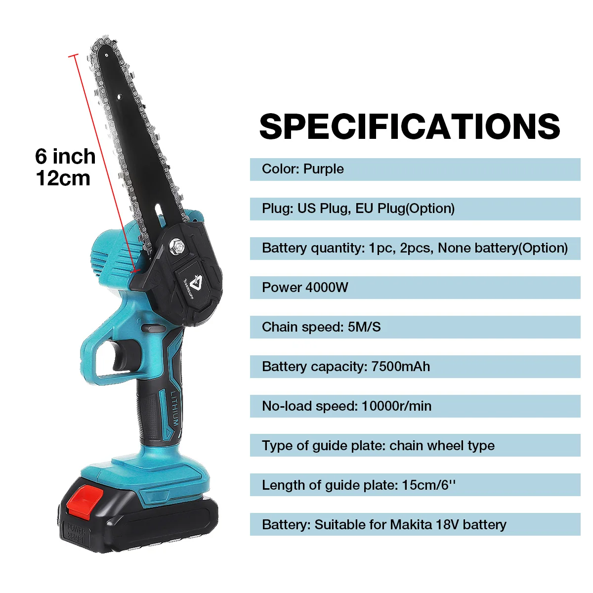 Мини-ПИЛА ЭЛЕКТРИЧЕСКАЯ беспроводная, 4000 Вт, 6 дюймов, 18 в