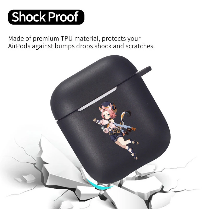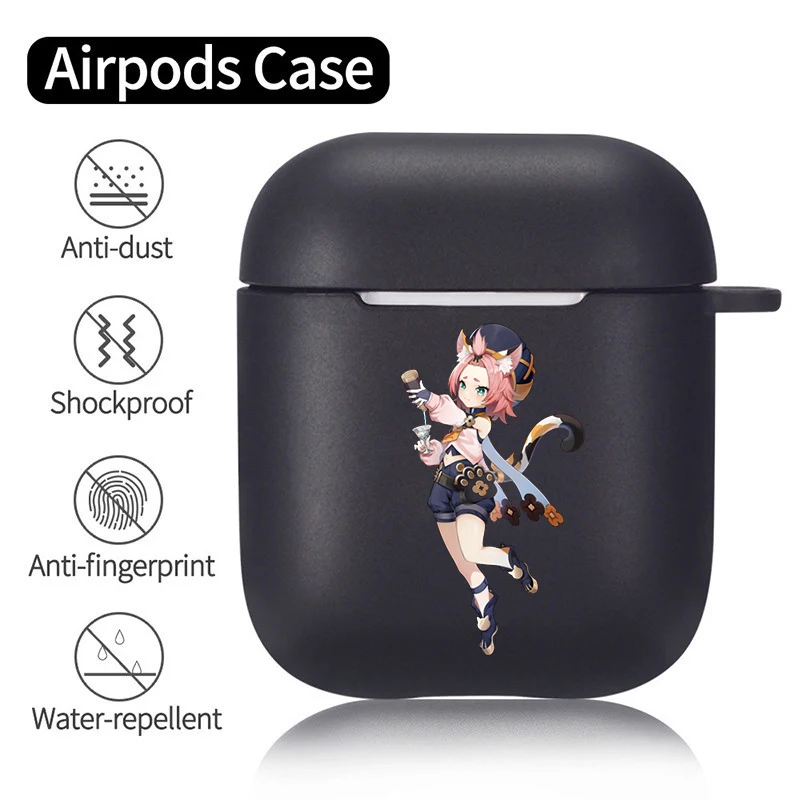 Черный силиконовый чехол Genshin Impact для Airpods 1, 2, 3 Pro, Zhongli, Hutao, разбавленный с Venti, Klee, Keqing, Qiqi, мягкие зеркальные чехлы