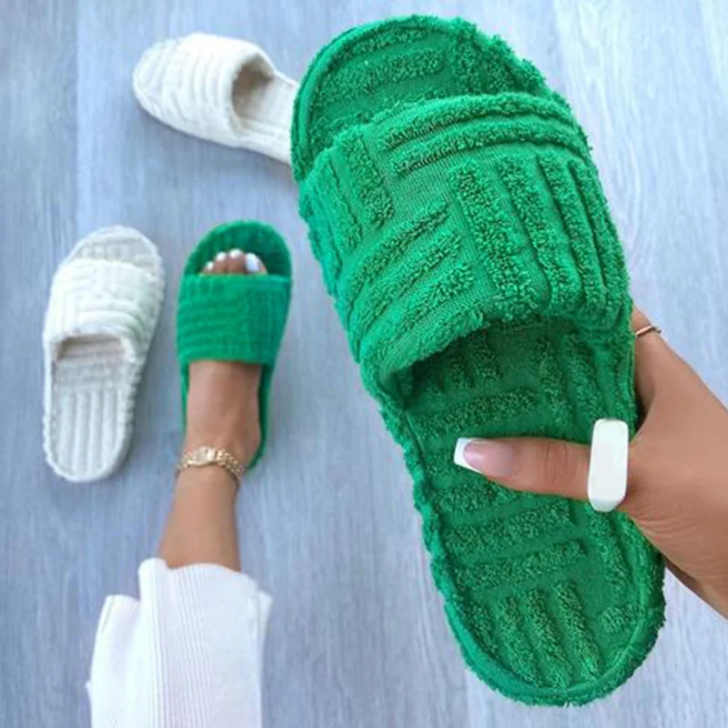 Сандалии женские на плоской подошве, однотонные пляжные тапочки без...