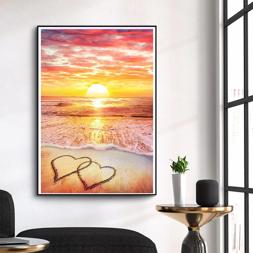 Алмазная 5d-картина сделай сам, пейзаж, пляжные цветы, круглая вышивка, мозаика с искусственными животными