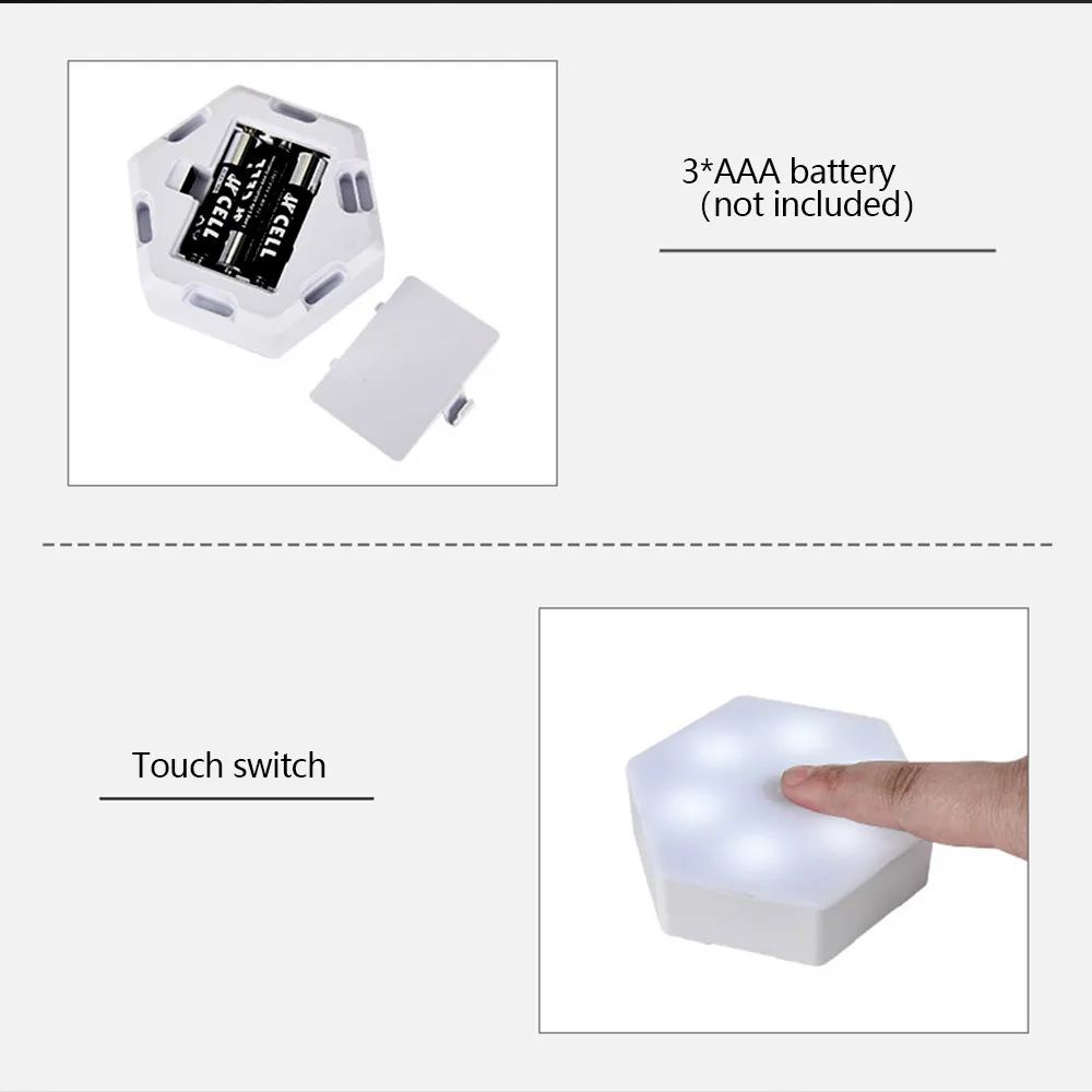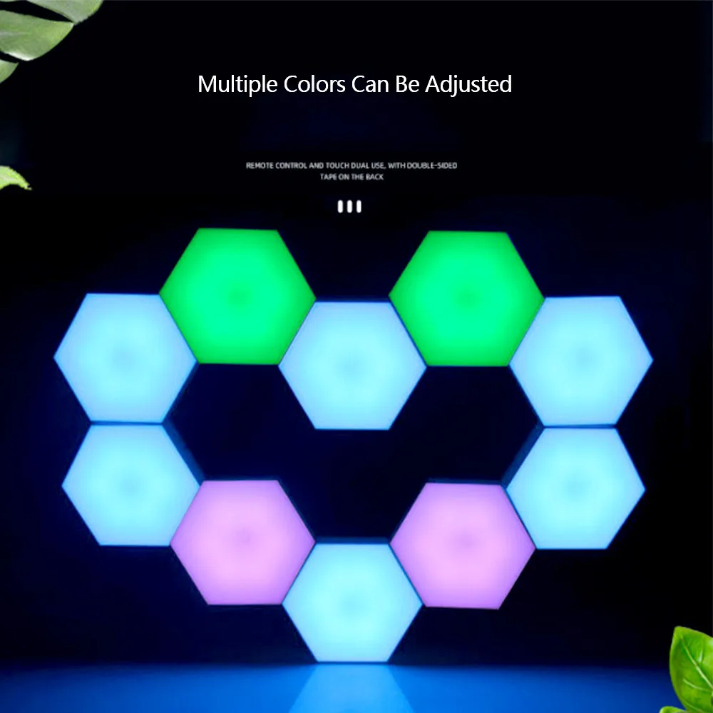 Квантовый светодиодный RGB светильник с дистанционным управлением, настенный светильник сделай сам с шестигранным узором, на батарейках, креативный декоративный ночник для спальни, гостиной