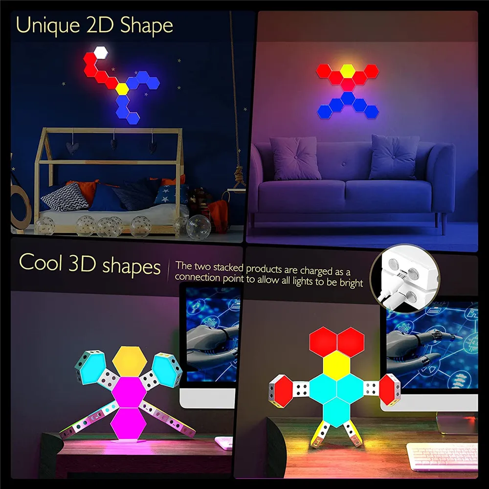 Квантовая Светодиодная лампа RGB, шестигранный настенный светильник...