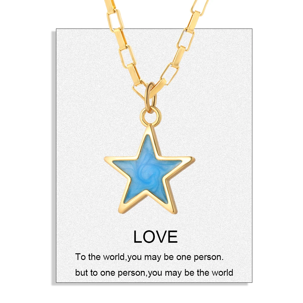 Ожерелье в стиле бохо с эмалью и звездами для женщин, женский кулон в богемном стиле, золотые длинные цепи, звено из нержавеющей стали, корейская бижутерия, 2022