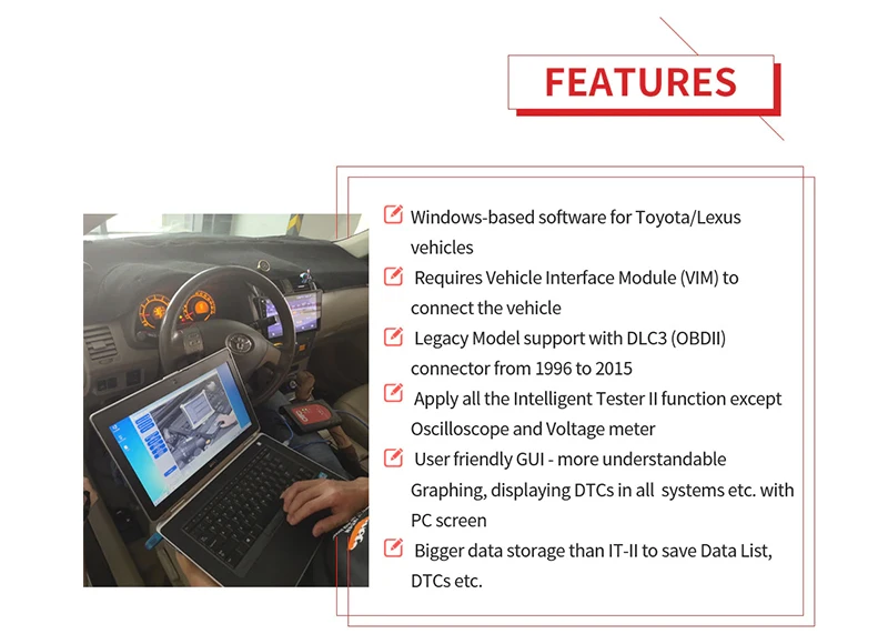 • Большая память данных, чем IT-II, чтобы сохранить список данных, DTCs и т. Д.