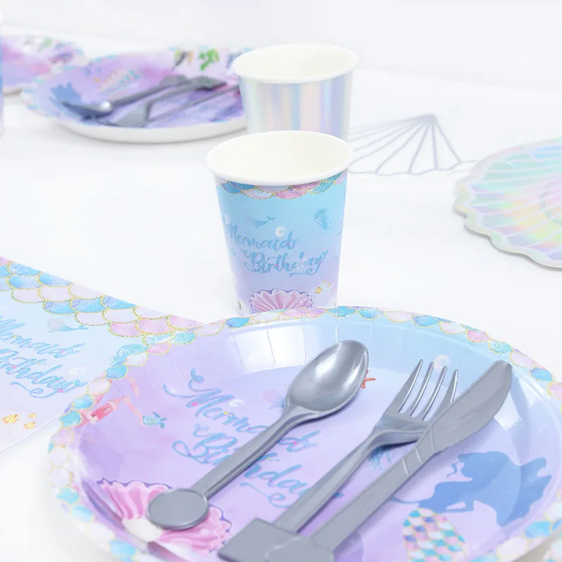 Одноразовая тарелка с рисунком хвоста русалки, баннер, Русалка, день рождения, фотография, вечеринка в честь Дня Рождения, декор для детского праздника