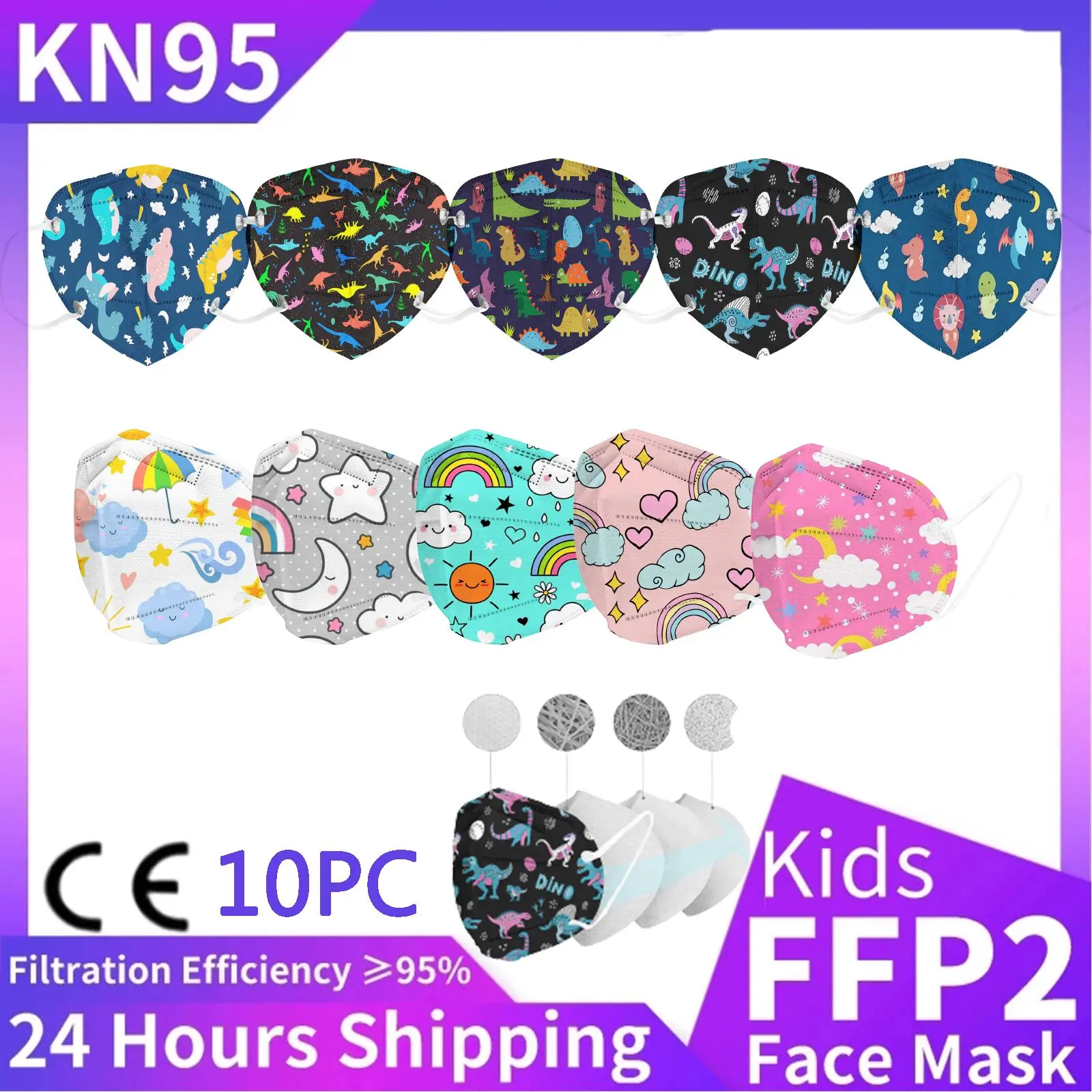 Маска детская KN95 10 шт., мультяшный динозавр fpp2, в форме рыбы, FFP2 CE, лицевая маска