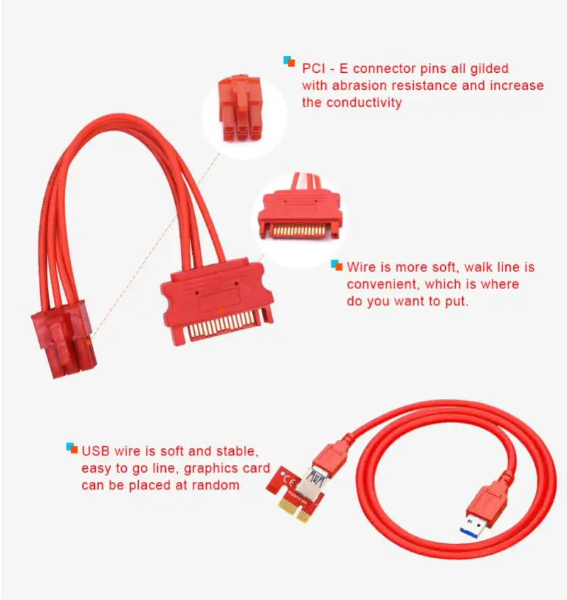 Производительность продукта: удлинитель видеокарты 6PIN интерфейс (16A мощность источника питания) для увеличения источника питания
