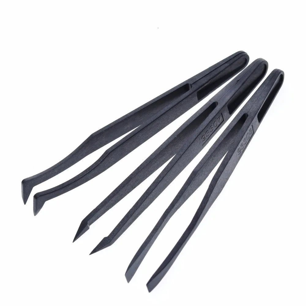 Описание: 1. Изготовлен из эластичного углеродного волокна и пластика 2. Антистатический; Антимагнитный 3. Для BGA PCB ремонтный инструмент 4. Легкий и портативный, легко носить с собой Характеристики: ТоварНазвание: Электронный пинцет Материал: пластик, углеродное волокно Цвет: черный