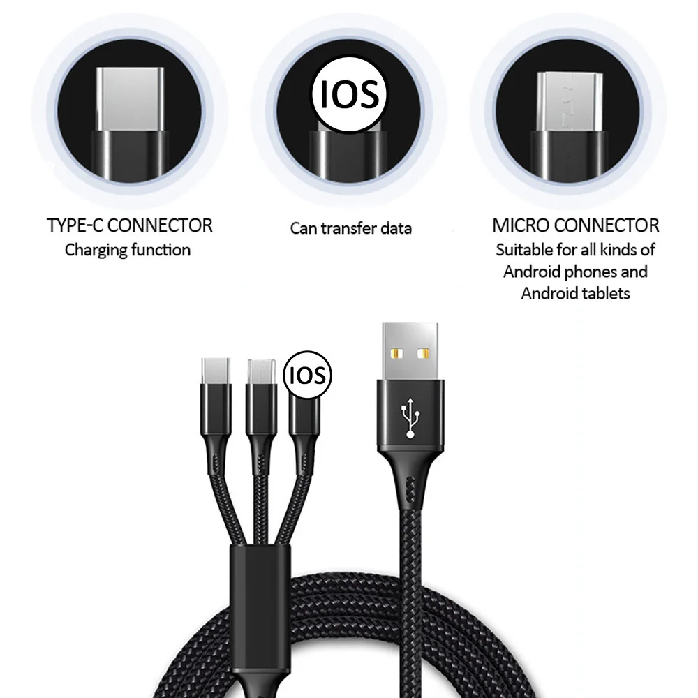 USB 3 в 1 кабель Micro Type C, зарядное устройство с несколькими Usb-портами, зарядный шнур Usb, стандартный провод для Samsung, Iphone, Xiaomi