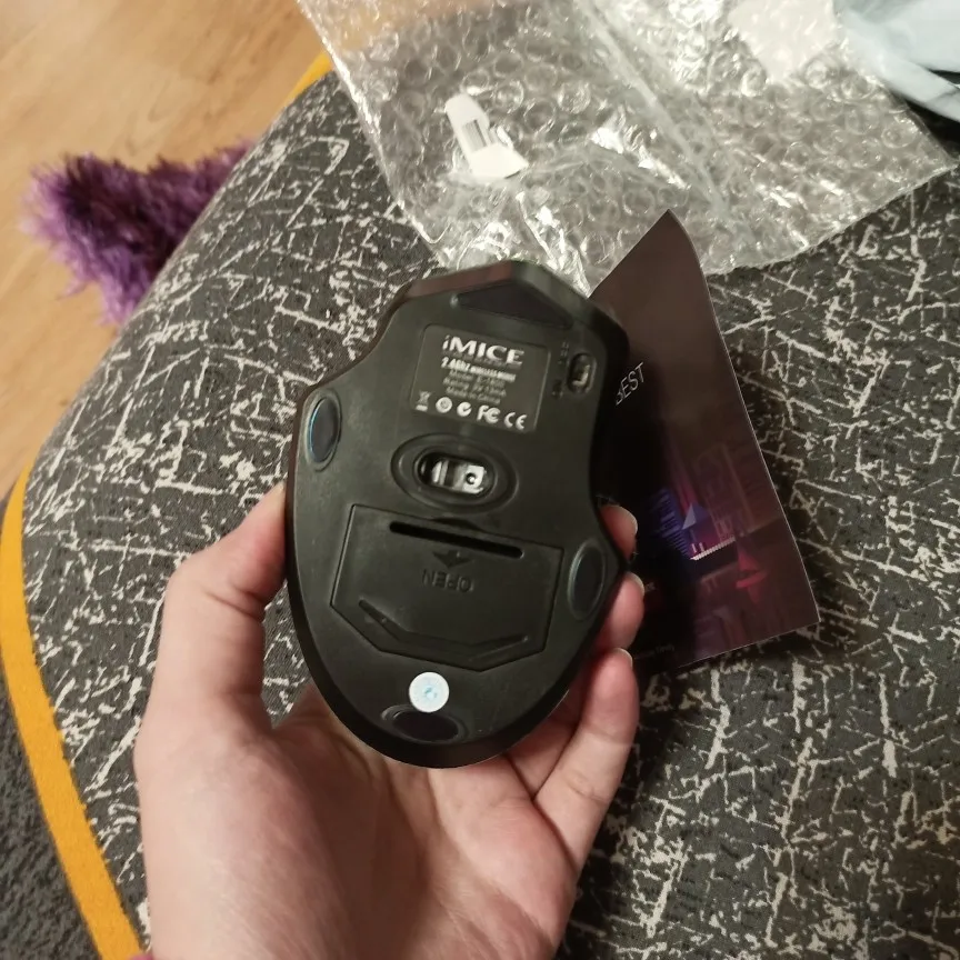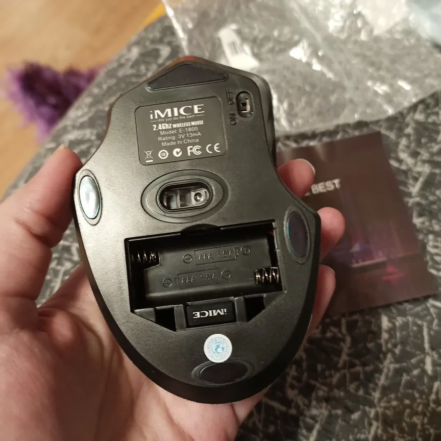 Упаковки вообще никакой нет, к сожалению. Батареек в комплекте нет. На коврике плохо реагирует, без коврика норм. Доставка быстрая, в районе 1.5-2 недели.