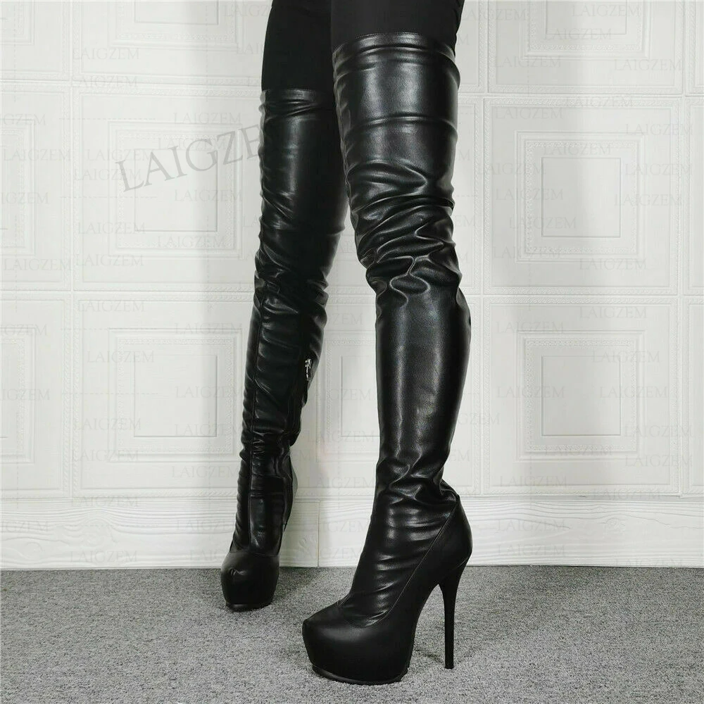 BERZIMERженские сапоги до бедра на платформе черные высокие сапоги ...