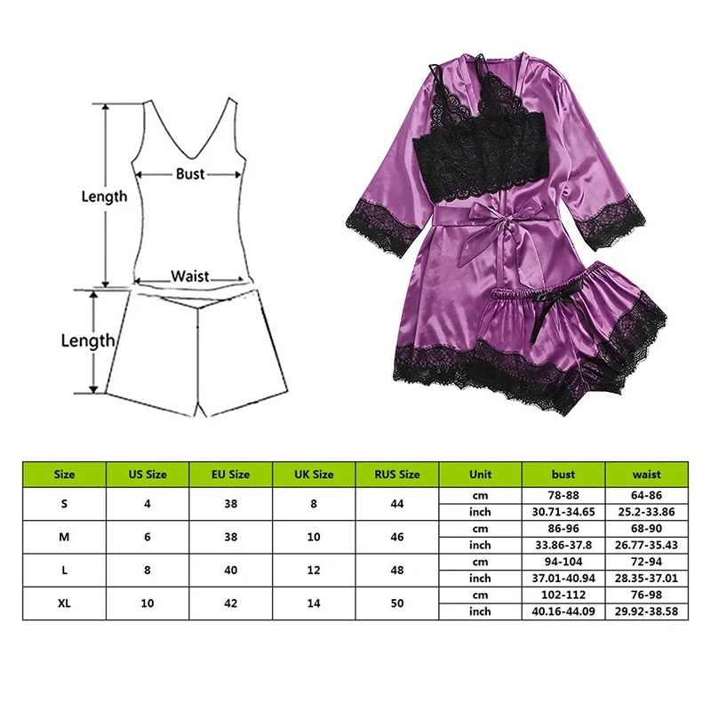 Шелковый халат для сна; Женские кружевные Сатиновые пижамы; Одежда ...