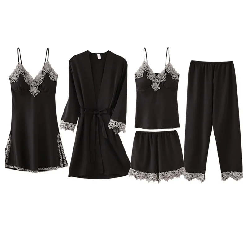 5 шт.компл. шелковый халат для сна; Женские кружевные Сатиновые пиж...