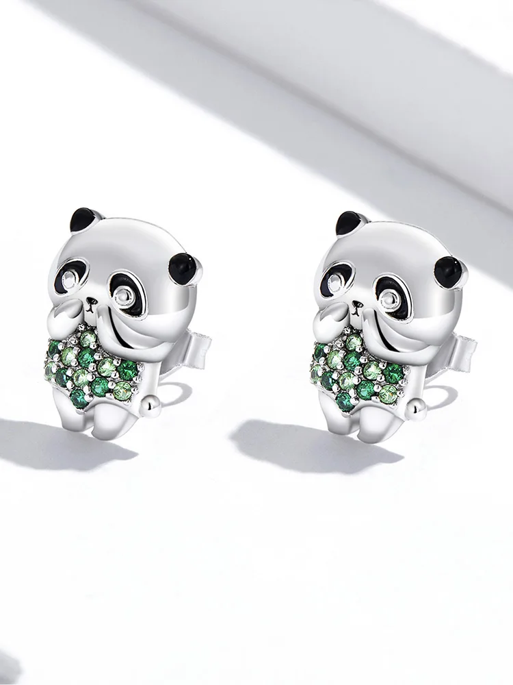 Женские серьги-гвоздики BAMOER из стерлингового серебра 925 пробы с милой пандой, серьги-гвоздики с зеленым камнем и бамбуковыми ушками, ювелирные украшения, серебряные ушки, подарок