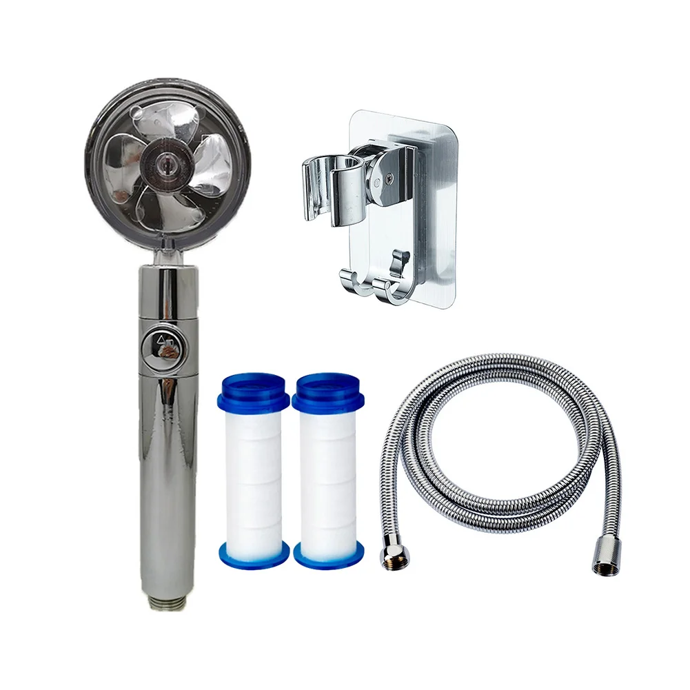 Конструкция вентилятора давления: принцип турбо вентилятора улучшает внутреннюю структуру душа и увеличивает давление воздуха внутри ручного душа. Когда вода входит в душевая головка, она полностью смешивается с воздухом, создавая мощный поток воды, поворачивая внутренний вентилятор. Это поможет вам избавиться от проблемы низкого давления воды.