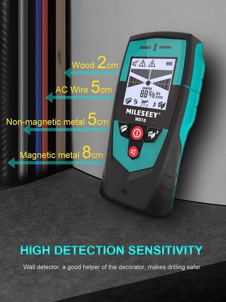 Ручной металлоискатель Mileseey, многофункциональный настенный сканер, металлодетектор WD10 с сигналом, для безопасности копания