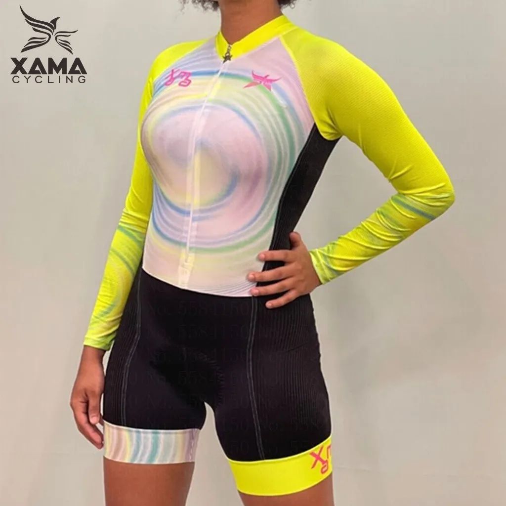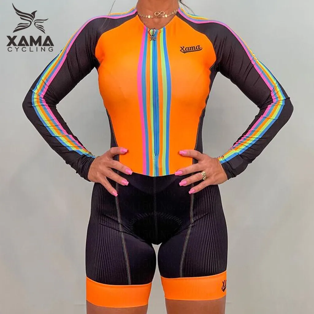 Женский велосипедный комбинезон Xama с длинными рукавами и защитой от излучения, костюм для триатлона, бесплатная доставка