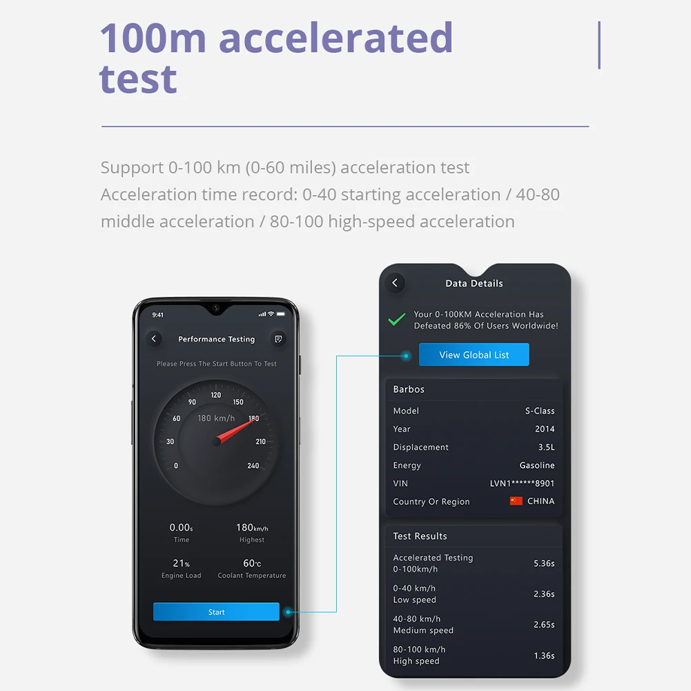 * 3. Поставляется с бесплатным приложением, которое содержит все функции ELM327, с функцией HUD и производительности автомобиля PK лидеров
