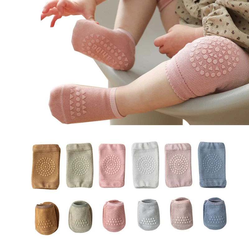 Детские наколенники, носки, однотонные нескользящие носки, наколенники, Детские Безопасные носки для ползания, защита для пола, наколенники