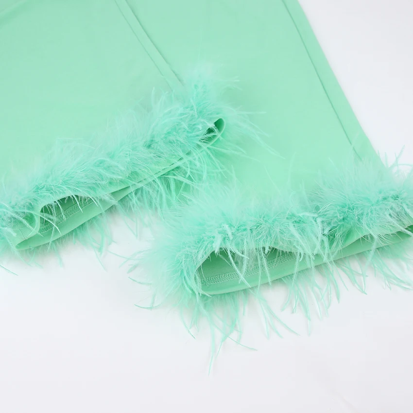 Женский комплект из двух предметов с перьями, Весенняя модная зелен...