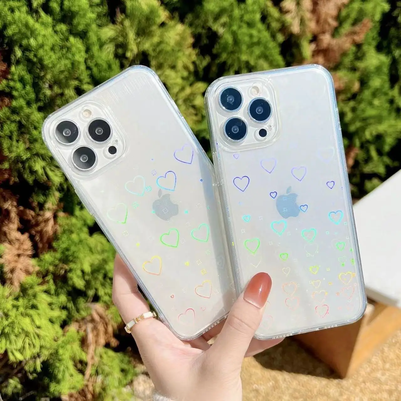 Прозрачный градиентный лазер Аврора в форме сердца для iPhone 13 Pr...