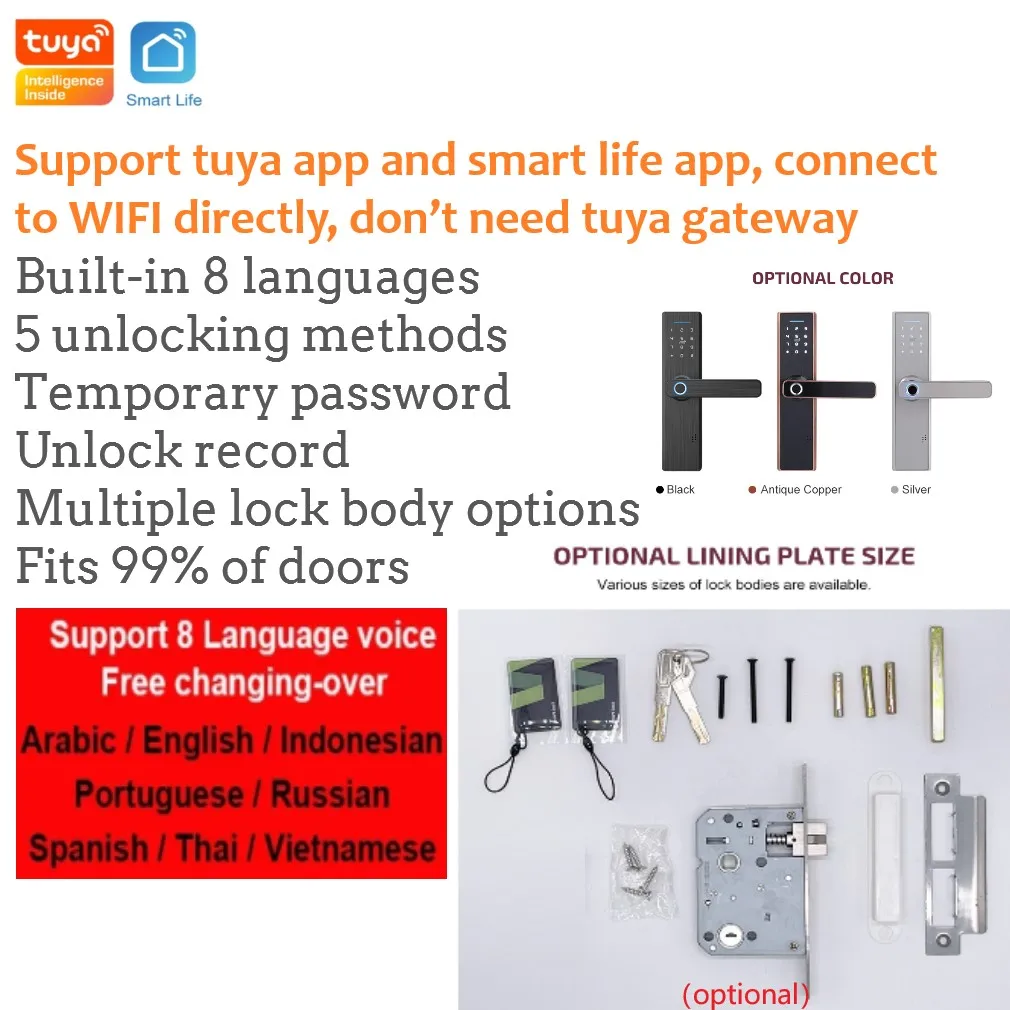 X1 биометрический отпечаток пальца умный электронный дверной замок Tuya приложение удаленно IC карта Пароль ключ разблокировка встроенный восемь языков голоса