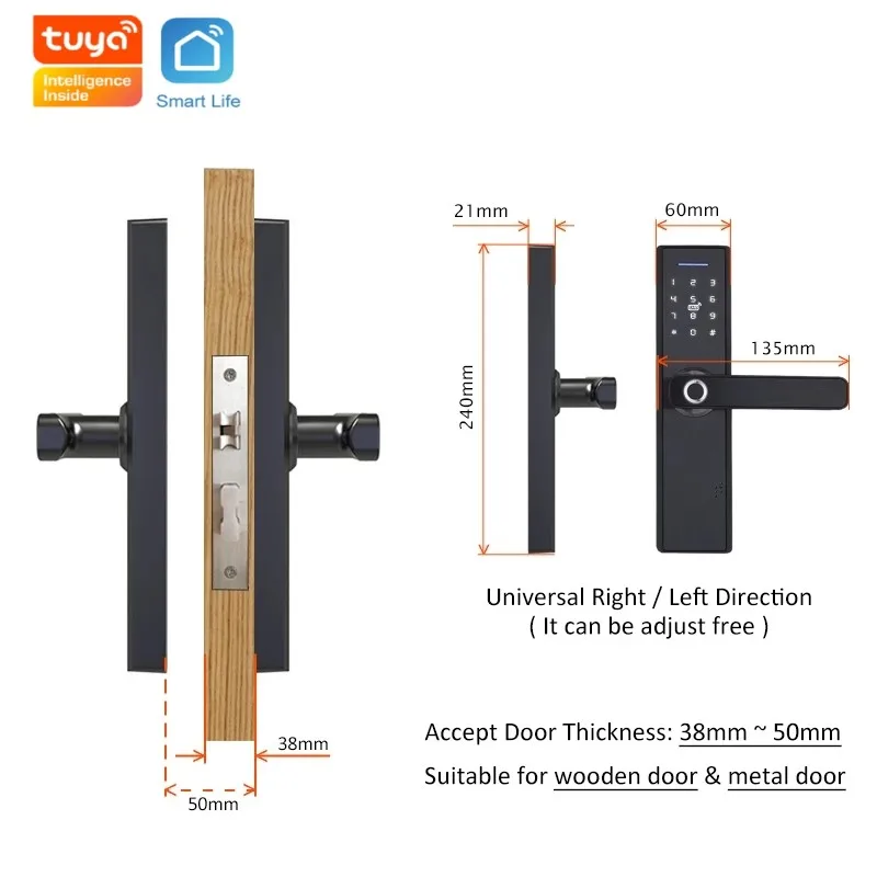 Смарт-замок Tuya электронный биометрический с поддержкой Wi-Fi и сканером отпечатков пальцев