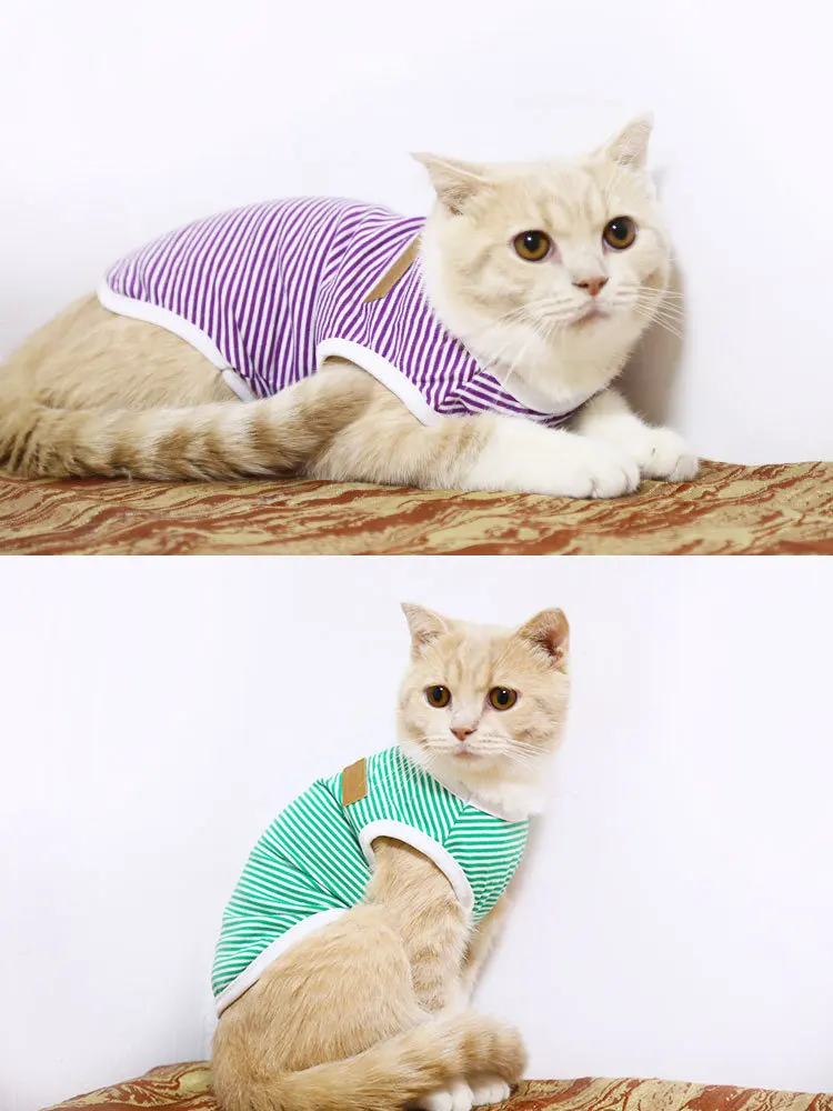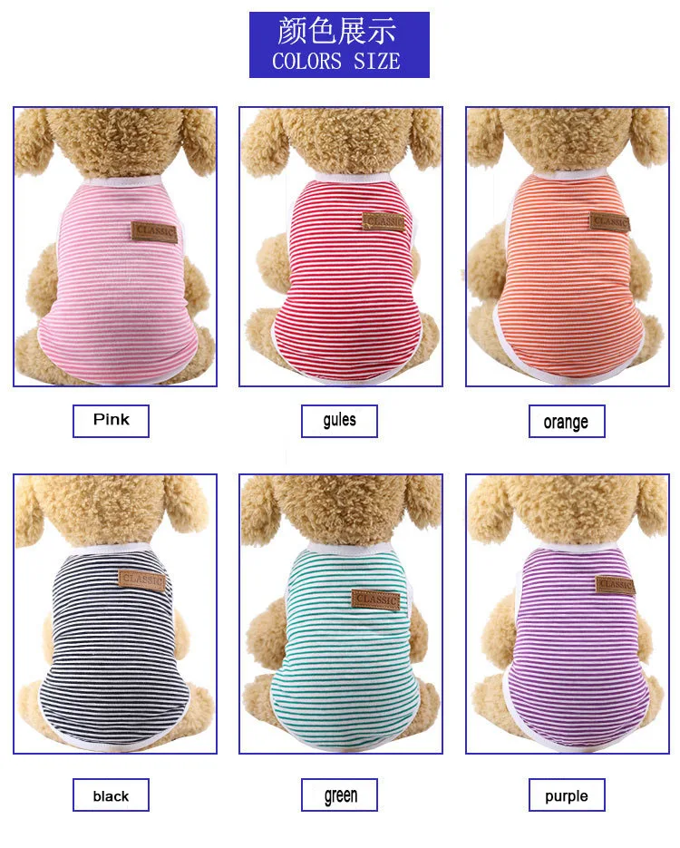 Весенне-летняя одежда для собак и кошек, жилет из чистого хлопка в полоску, дышащая и удобная одежда для домашних животных маленького и среднего размера
