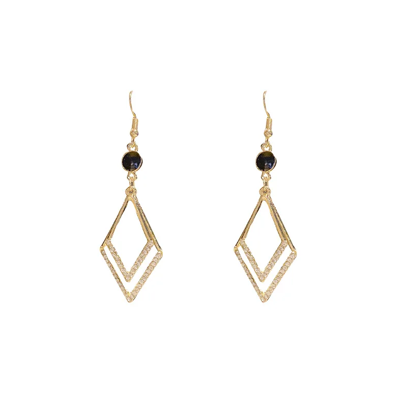 Серьги женские, блестящие, стразы, с металлической полоской золотис...
