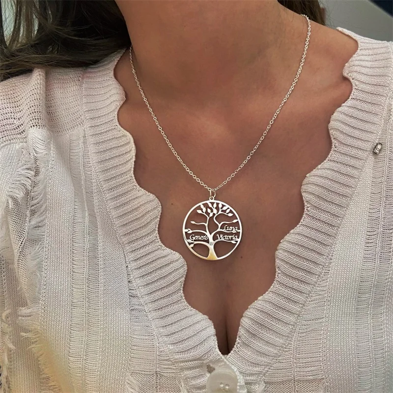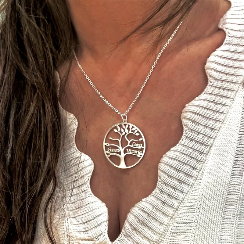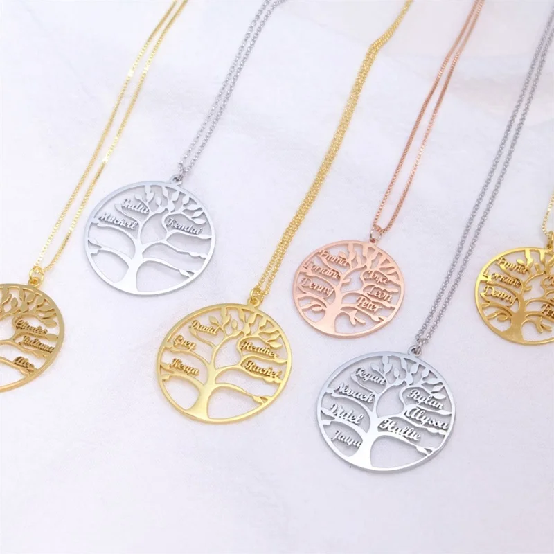 Индивидуальное ожерелье с именем Древа Жизни для женщин, индивидуальное модное ожерелье с именем под заказ, бижутерия для всей семьи, праздничный подарок