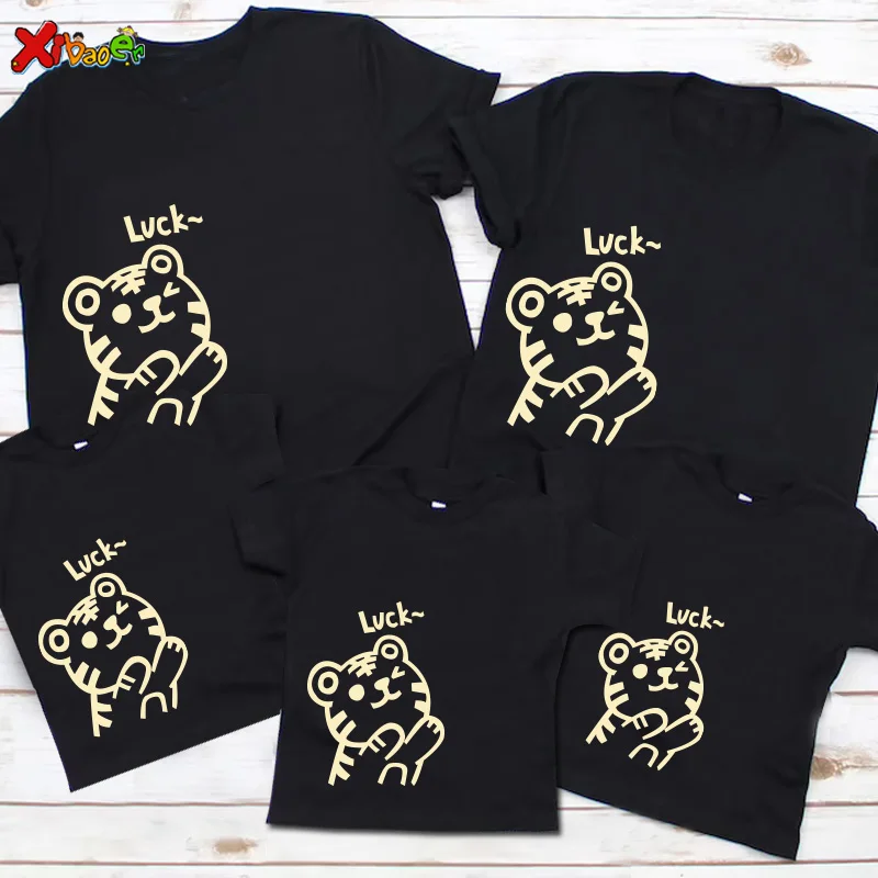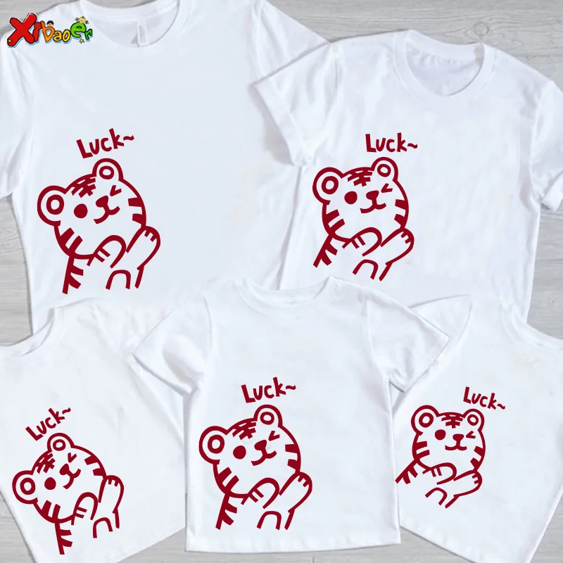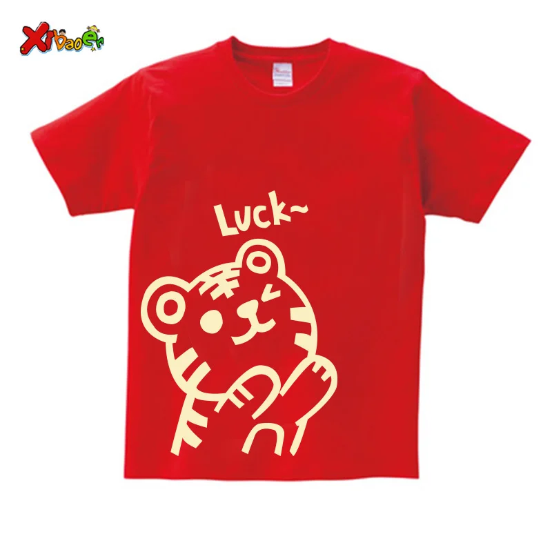 Семейные одинаковые наряды, футболка с тигровым принтом для вечерние, одежда для китайского Нового года, праздничная Детская рубашка, парные наряды, красная рубашка