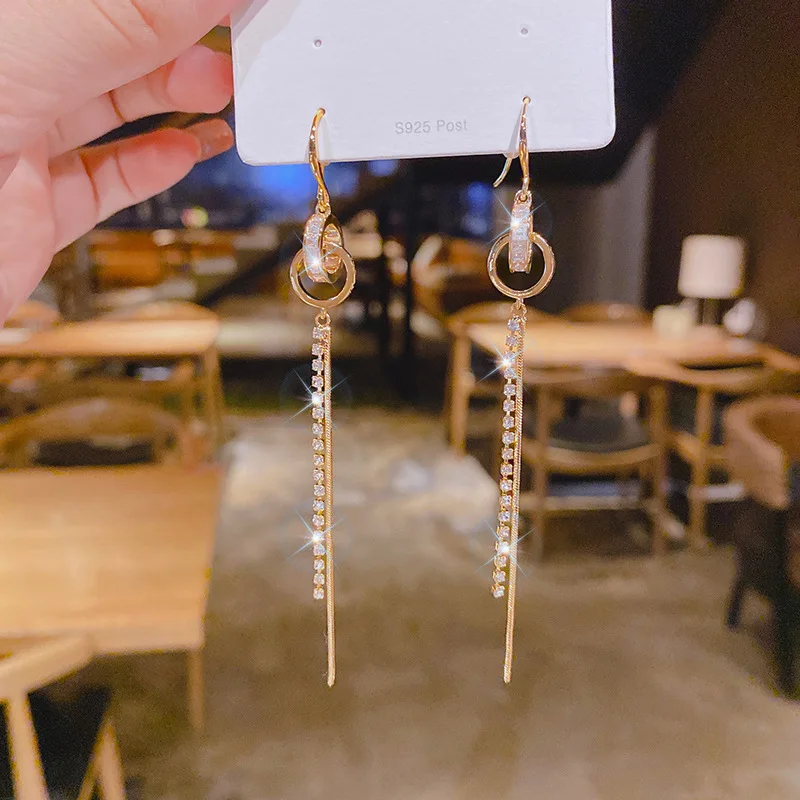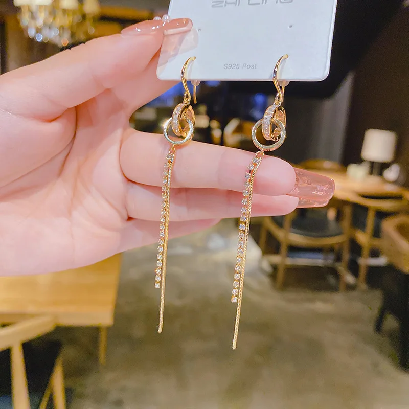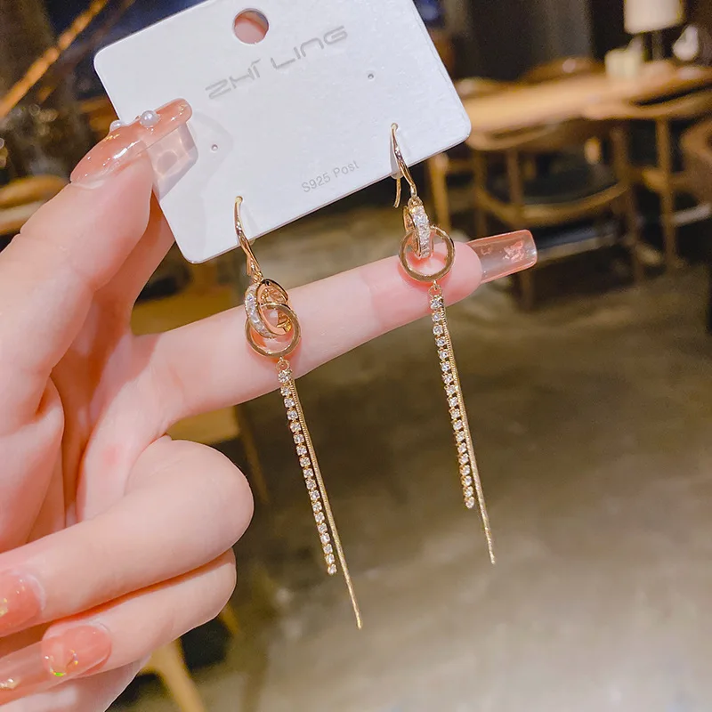 Персонализированные темпераментные полые серьги-кольца с инкрустацией бриллиантами и кисточками для женщин в Корейском стиле